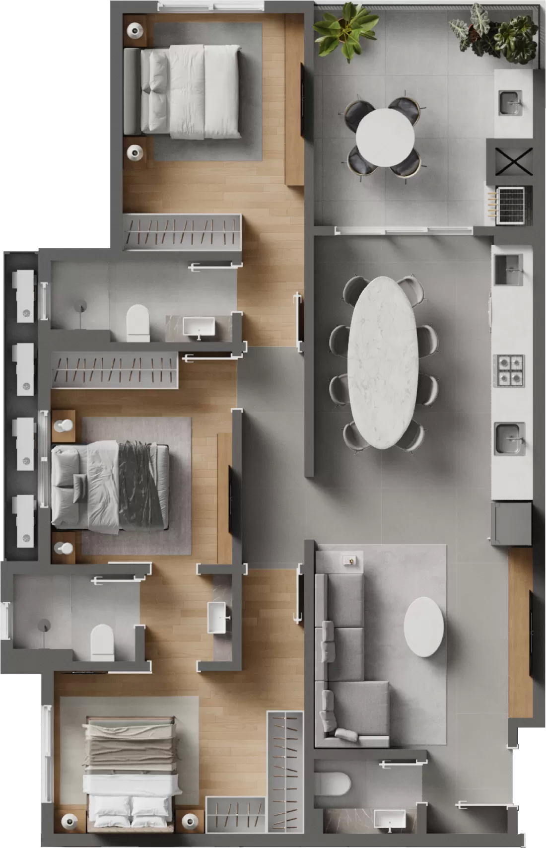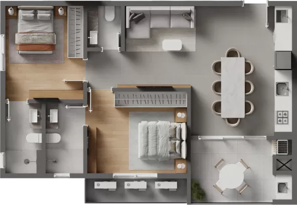 *As imagens, ícones e diferenciais apresentados neste material possuem caráter ilustrativo. Para informações completas sobre características técnicas, acabamentos e condições de entrega, consulte o Memorial Descritivo e o Manual do Proprietário. Ressaltamos que os itens informados podem variar conforme o tipo e a unidade do empreendimento, sendo essencial a verificação das especificações de cada imóvel.