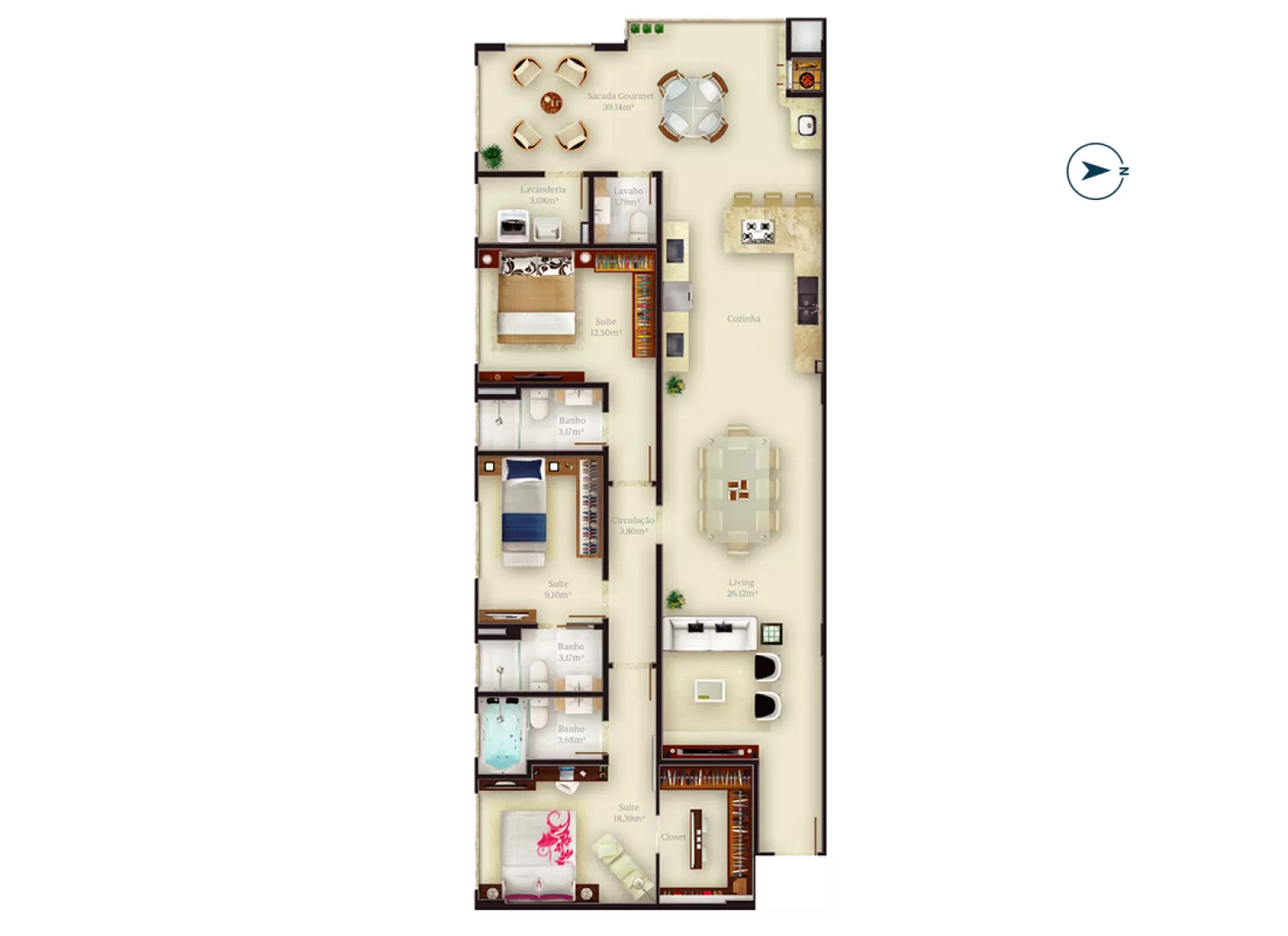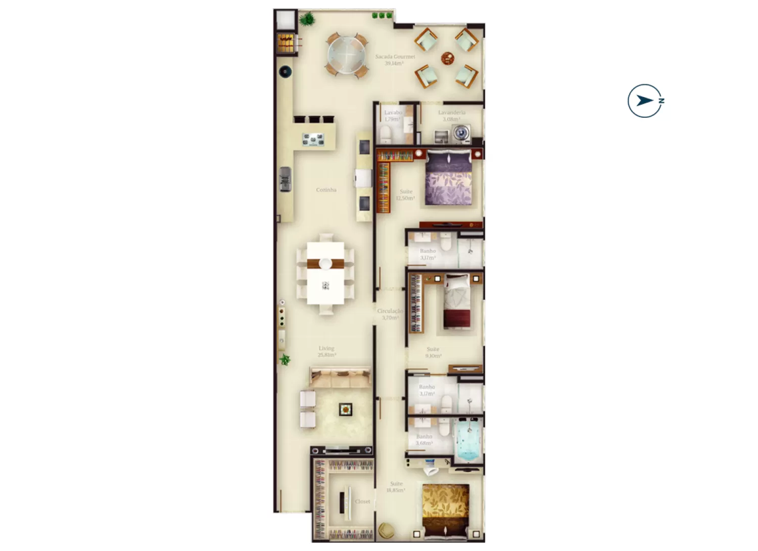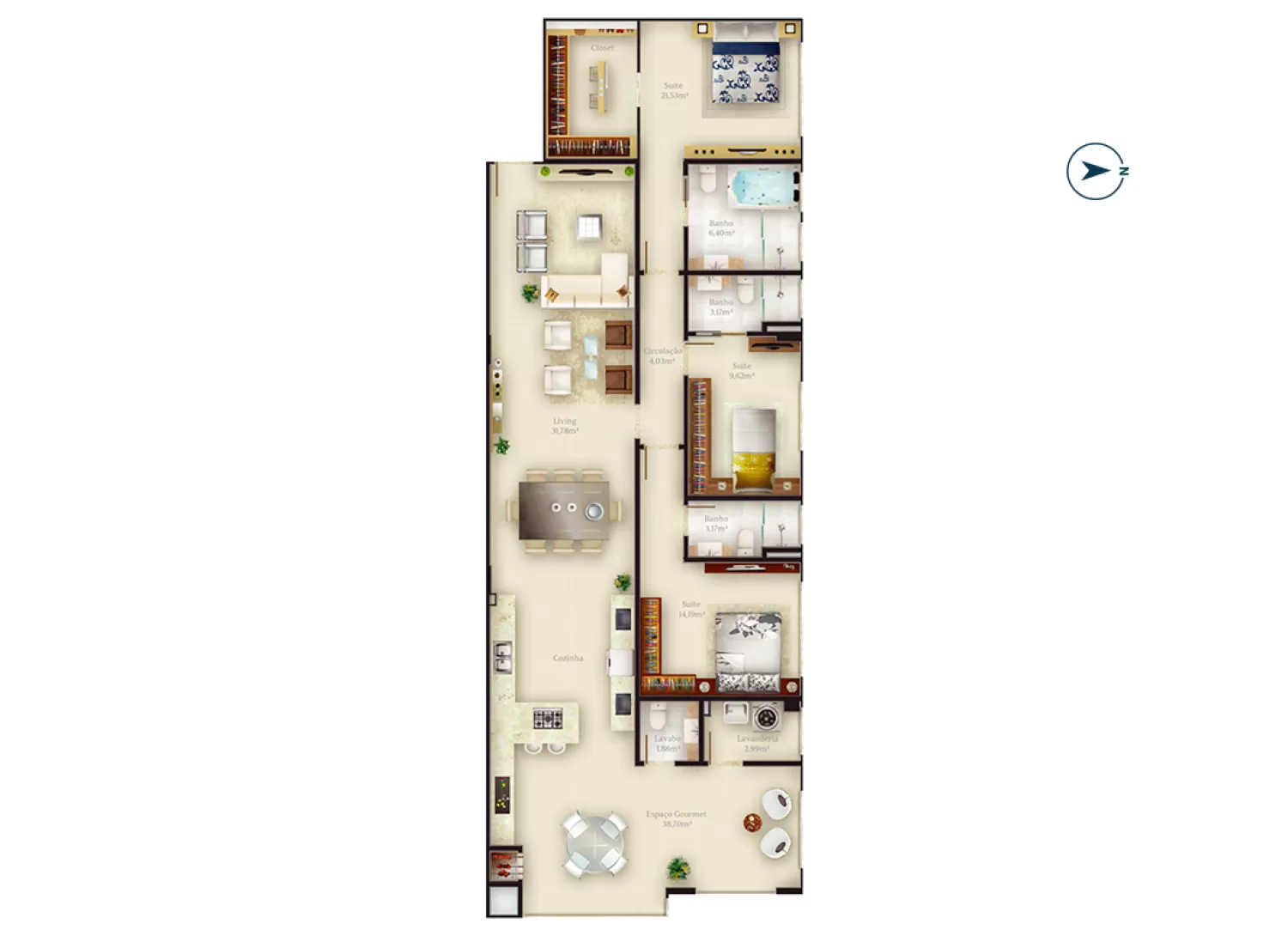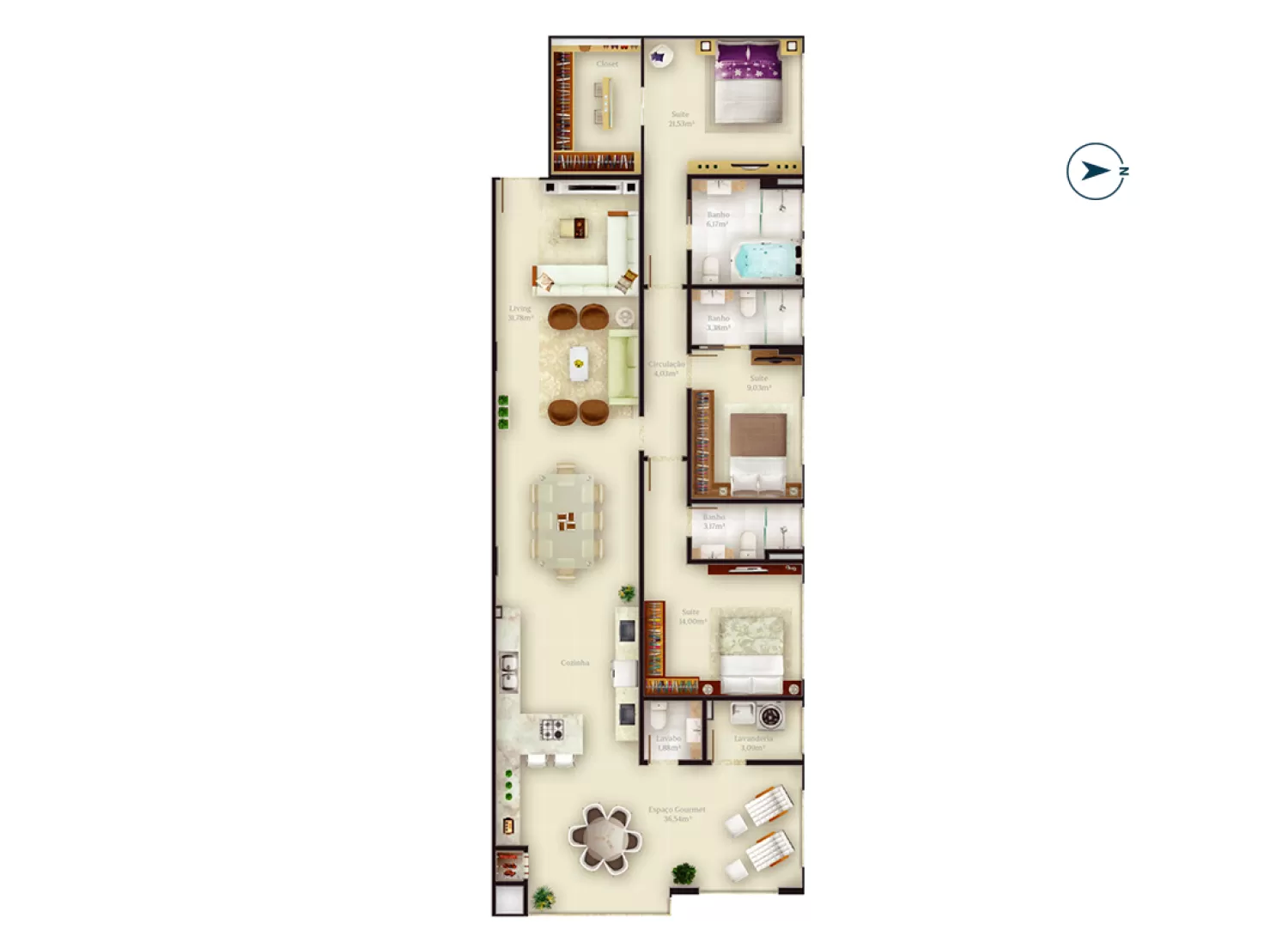 O empreendimento se destaca por sua área de lazer de 1500 m², que combina espaços de tranquilidade, como o SPA e a sala de massagem.