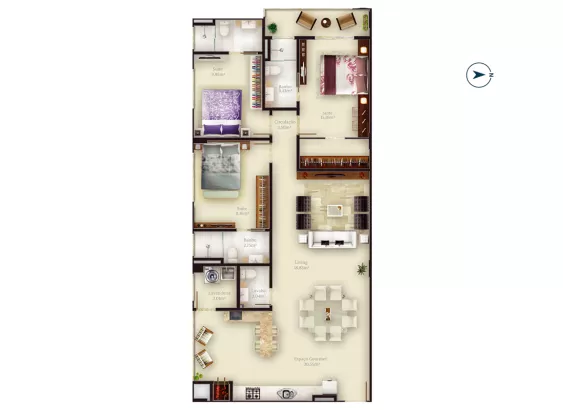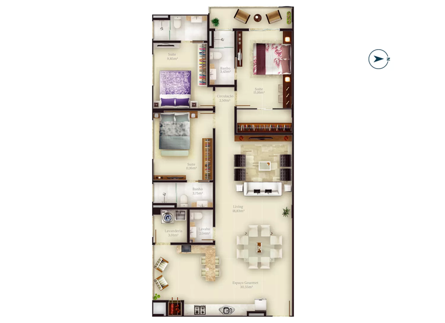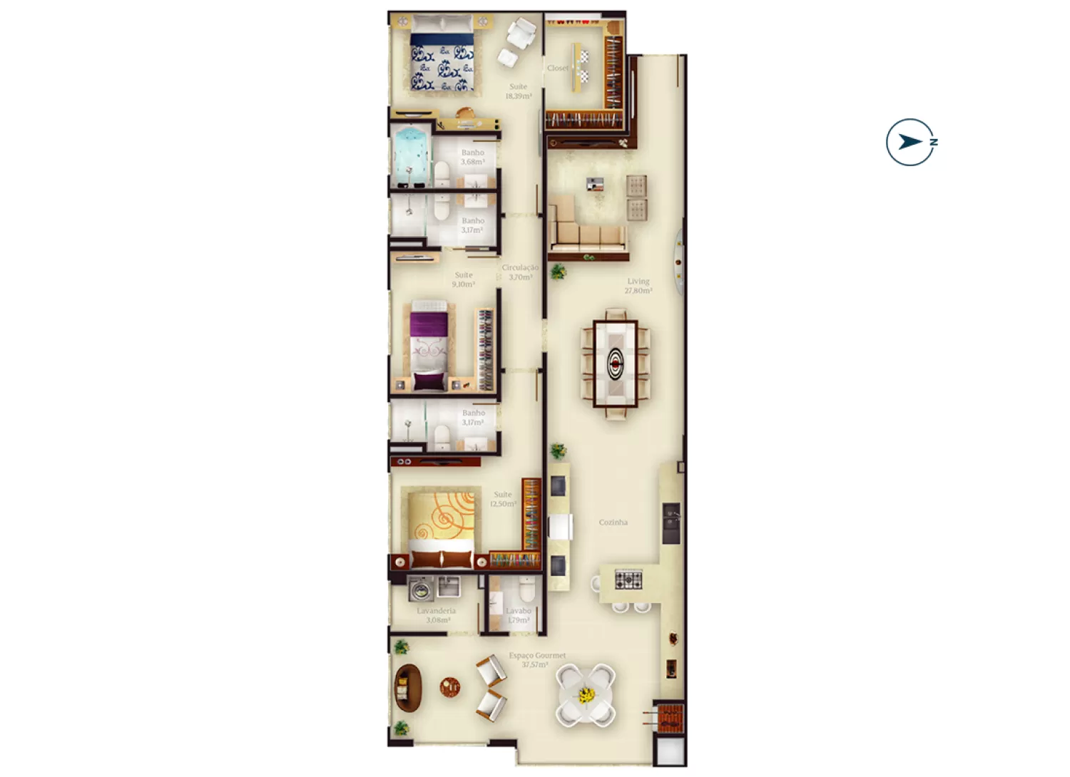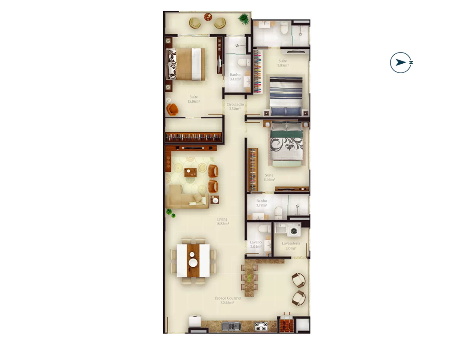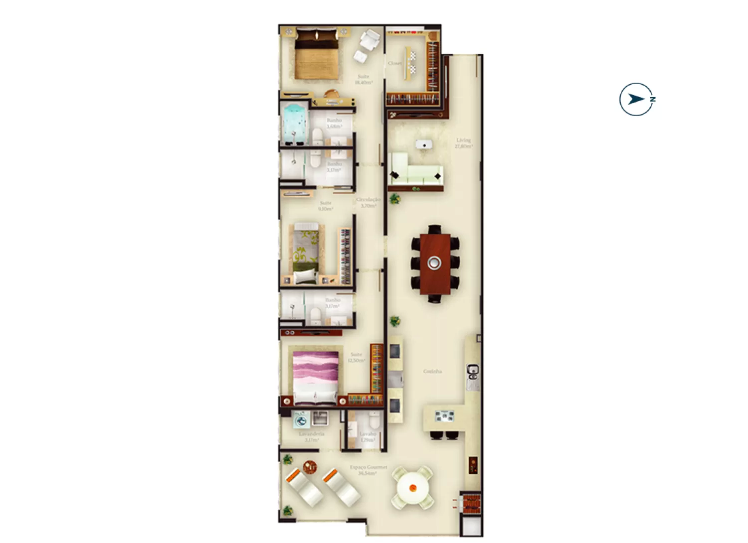 O empreendimento se destaca por sua área de lazer de 1500 m², que combina espaços de tranquilidade, como o SPA e a sala de massagem.
